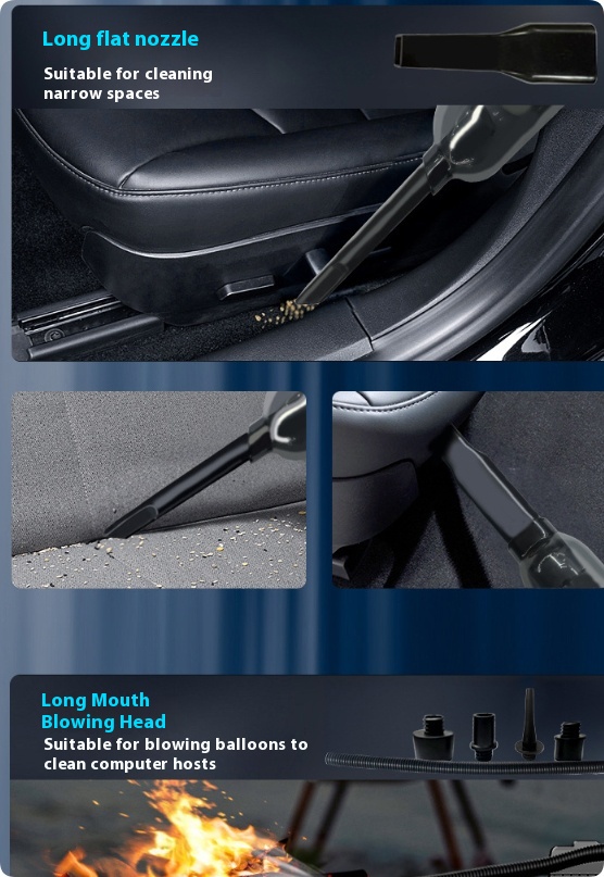 - High-Power Vacuum: 22L/min suction power with noise reduction tech cleans dust, pet hair, crumbs, and sand from hard-to-reach places.