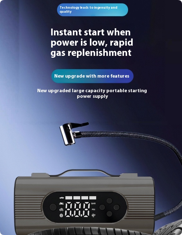 - Large-screen digital display for air pressure, battery level, and mode selection